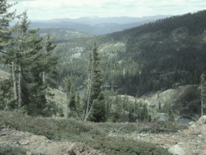 I had sort of thought of not getting back in the car on this middle day and instead spend it hiking some of the trails to some of the lakes in the Grouse Ridge Basin. But, I was antsy to find the stupid Carr/Feeley Lakes that we somehow couldn’t find the day before. I couldn’t wait until the following day on our way out to find them, as I knew by then, we would be thinking of being home and if we had trouble finding the lakes, it would not be fun. We would be torn between continuing the search until successful, and getting home at a reasonable hour. So off we drove, up, up, up, up, and over all of the dips and bumps to the top of the Red Fir mountaintop. We retraced our path from the day before; back to Forest Road 17, turn left, then back up the hill to the trailhead parking lot.
