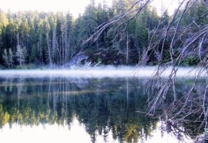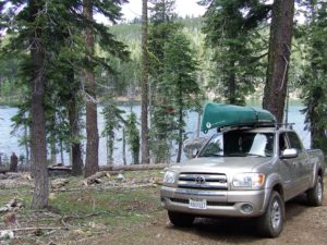 Bowman Lakes Road, Forest Road 18, is paved for about the first 8 miles, until just past the turn-off to Lindsey and Carr/Feeley Lakes on Forest Road 17. Road 17 heading to Lindsey, Carr, and Feeley Lakes, is a pretty good dirt road. In two miles, you come to a fork; to the left, Lindsey Lake is another two miles. There are some steep, gravelly stretches of road, particularly just as you get to the lakeside campground that I would not drive on unless I had four wheel drive (just in case). The road certainly is doable in a truck or high clearance rig when the weather is good and there are no unexpected situations; however, I wouldn’t chance it. The Lindsey Lake Campground is a US Forest Service campground with about a dozen sites stretched out along the Lake. The campground is set in dense Red Fir at about 6200’. The sites are not on top of each other, but there isn’t a lot of privacy either. There is one outhouse and water, and each site has a table and fire ring. The fee is $15 per night per space.
