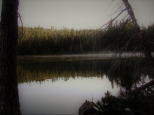 The tent was real warm and the night a perfect cool/cold temperature to get all bundled up and sleep well. I didn’t even get up to pee, which is very unusual for a young man of my age. I was up early as I almost always am and watched the sunlight slide down the mountain side across the lake, then flow across the lake top, then finally spread out over our site. It was wonderful to finally feel the warmth of the sun after watching it for so long come down the mountain and cross the water ever so slowly. It was a long time coming, and despite my failure at making it hurry up, it was definitely worth the wait.