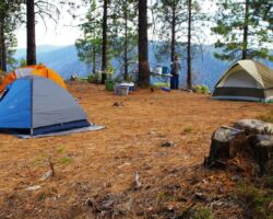 But for now, we must focus on determining the exact placement of the fire ring.  There were several that were used in this spot, but none quite right – too close to the tree, too near a good tent spot, too far away from the view.  We decided Bob would build us a new fresh one in the right spot.  Stuff was spread out, tables set up, firewood unloaded and more gathered, tarps spread out in the four best tent locations – too close together for my taste/sensitivities but at least we did have four and not…one for instance.  Soon I was exhausted and had to sit and relax.