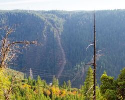 We stopped at a clearing in the Manzanita to scout about.  There were massive power lines and towers, smaller normal-sized telephone poles and their lines, and the enormous pipes that carried the water from reservoir to reservoir to generate power at peak times in the summer to balance the supply with the enormous needs of the population in the valley below.  This was heavily used country – not surprising since we were only a few miles from Highway 50, Pollack Pines, and all that.  But there was something odd about this place, an eerie feeling, not scary weird, but uncomfortable somehow.  With all the human activity, construction, altering of the landscape on a massive scale, it finally become clear what we all were sensing.