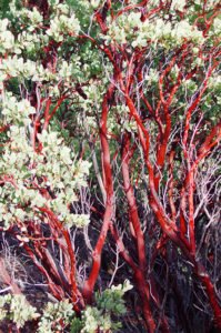 We stopped at a clearing in the Manzanita to scout about.  There were massive power lines and towers, smaller normal-sized telephone poles and their lines, and the enormous pipes that carried the water from reservoir to reservoir to generate power at peak times in the summer to balance the supply with the enormous needs of the population in the valley below.  This was heavily used country – not surprising since we were only a few miles from Highway 50, Pollack Pines, and all that.  But there was something odd about this place, an eerie feeling, not scary weird, but uncomfortable somehow.  With all the human activity, construction, altering of the landscape on a massive scale, it finally become clear what we all were sensing.