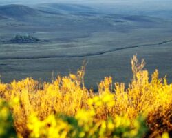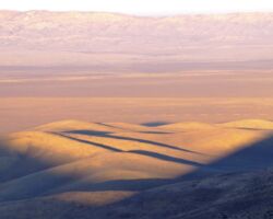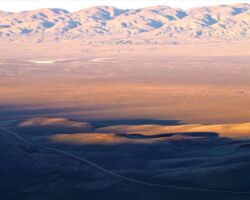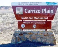 The Carrizo Plain National Monument is about fifty miles West of Bakersfield; about thirty-five miles West of Highway 99; and/or about ten miles West of Highway 33. It is approximately 250,000 acres in size— about 38 miles long—and 17 miles wide, running approximately NW to SE. The Monument is distinguished for its world-class fossils, paleontological resources, and as the location where several rock formations were first recognized and defined such as the Paso Robles, Caliente, and Morales formations. The geomorphic and geologic structures of the Monument are the product of millions of years of erosion, sediment deposition, faulting, volcanism, and uplift. Most of the sediments that consolidated to form the Caliente and Temblor Ranges that surround the Plain were deposited into marine and near-shore basins during the Miocene Epoch.