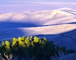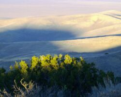 This really blew me away – I was pretty far away but it was so quiet, so peaceful, so still. An occasional breeze rustling the bushes, an occasional birdy whizzing by into some shrubbery; the call of a hawk, the call of a Raven; chirp of a little tweety bird. That was it. Silence. In gigantic open spaces like this, it is often so quiet. The few local sounds can be heard from great distances. Like the views and vistas and massive open landscapes that play tricks on your eyes and make judgment of distance so difficult, so too does the absolute stone cold peacefulness of the desert and open arid plains like this. I was really happy and hopefully captured some of the images of shadows, low light, and mirages that the setting sun was creating over the low lying topography below. I felt like Lawrence of Arabia – it wasn’t that desert-like; there were no sand dunes or camels, or Arabs for that matter but this place felt good and the images being created, and constantly slightly modifying into more perfectly beautiful and fluid scenes, had me. I could have sang; I could have flown with the Ravens; I could have been.