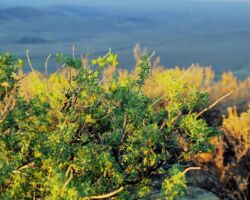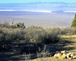 Our thirst momentarily quenched, we remounted the steed, climbing past a few more sharp curves to another wide spot and a fire ring. The BLM encourages dispersed campers to camp in existing/previously used sites. These sites are pretty obvious due to the lack of trampled vegetation, the rocks for a fire ring or perhaps charred remains from campfires. Often flat tent or sleeping sites have been cleared and/or scraped so it doesn’t take a paleontologist to see that other folks have camped in these spots. This spot did not have the totally unobscured 200 degree view of the prior spot, but it did have some large Junipers, Mahogany, and Scotch/Witches Broom along with plenty of smaller shrubs of sage and grasses. It was much greener and far more pleasant, comfortable, calming, and far less chance for dust and dirt. We were up the hill another 500 feet or so in elevation, so the views between the Junipers off the edge and out over the plain below and beyond were a bit more expansive than from the first site. It did not take more than another beverage or two before we decided this was it. We were here; six hours of driving, exploring, and discovery already made it feel like we had been gone for days; we had already seen some great things, fantastic scenery, and knew we were in a real special place. We were off to a great start and were feelin’ real good about the next couple days.