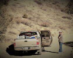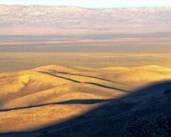 I was concerned about the status of the boys upon their awakening, but to my great surprise, nay astonishment, they both were quite spry and active. In fact they were both up before me again and thinking a sausage and egg breakfast was in order. I kept to my manly Neanderthal menu of yogurt, dry toast, banana, and hardboiled egg. Breakfast was consumed; coffee was re-engaging the mono nucleic acids and riboflavin’s and soon energy was being expended on packing up. Synapsis were again firing and cells recovered. The warm sun and fresh breeze were cleansing. We took in the vast vistas and many distant horizons, thousands of ridges, ravines, washes, and alluvial fans carrying their detritus onto the valley floor as we neared the moment of departure to begin our Northward journey home.