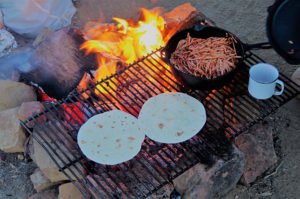 I know I have said this before, but the beauty of containerizing much of your gear is that is makes loading and unloading very quick and easy. We were done in a half hour or so; an excellent spot again a massive Juniper was selected for the kitchen, the views were outstanding; a little breeze was blowing, but not too much and it was almost nonexistent on the leeward side of the Junipers. Tables, chairs, stove, were out; some gear and tents set up; tunes, beverages, and snacks; fire.