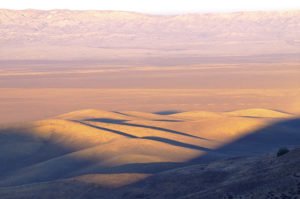The Carrizo Plain National Monument is about fifty miles West of Bakersfield; about thirty-five miles West of Highway 99; and/or about ten miles West of Highway 33. It is approximately 250,000 acres in size— about 38 miles long—and 17 miles wide, running approximately NW to SE. The Monument is distinguished for its world-class fossils, paleontological resources, and as the location where several rock formations were first recognized and defined such as the Paso Robles, Caliente, and Morales formations. The geomorphic and geologic structures of the Monument are the product of millions of years of erosion, sediment deposition, faulting, volcanism, and uplift. Most of the sediments that consolidated to form the Caliente and Temblor Ranges that surround the Plain were deposited into marine and near-shore basins during the Miocene Epoch.