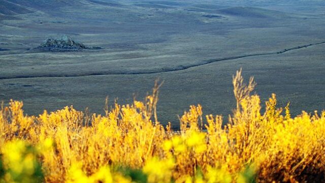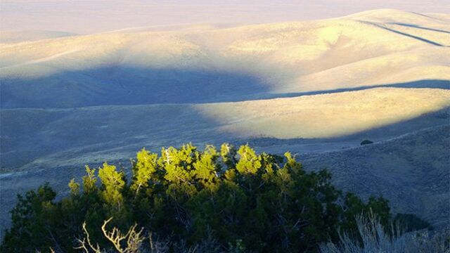 This really blew me away – I was pretty far away but it was so quiet, so peaceful, so still. An occasional breeze rustling the bushes, an occasional birdy whizzing by into some shrubbery; the call of a hawk, the call of a Raven; chirp of a little tweety bird. That was it. Silence. In gigantic open spaces like this it is so quiet. The few local sounds can be heard from great distances. Like the views and vistas and massive open landscapes that play tricks on your eyes and make judgment of distance so difficult, so too does the absolute stone cold peacefulness of the desert and open arid plains like this. I was really happy and hopefully captured some of the images of shadows, low light, and mirages that the setting sun was creating over the low lying topography below. I felt like Lawrence of Arabia – it wasn’t that desert-like; there were no sand dunes or camels, but this place felt good and the images being created, and in constant motion and permanently slightly modified into more perfectly beautiful and fluid scenes, had me. I could have made it; I could have flown with the Ravens; I could have been.