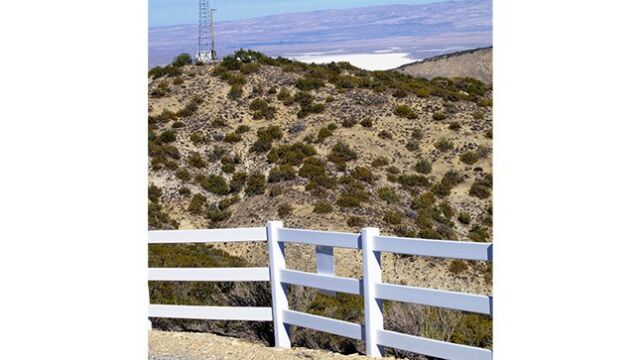 We followed the good dirt road down the South slope for a bit, just to see, and it kind of looked like more of the same – very dry, large shrubbery scattered here and there, small brush and tall grass – pretty classic southern California/Mediterranean landscape. So, it was time to go back and really investigate that structure we passed. The road was gated and a warning sign posted about not interfering or damaging the structures. Not really a heavy/serious “KEEP OUT” or NO TRESPASSING”, “VIOLATORS WILL BE SHOT” kind of a warning; more of a, we know since you are way the hell out here that you are going to check this weirdness out, so just don’t be stupid and don’t wreck/vandalize anything. Besides, the entire area was surrounded by a really nice three rail PVC fence, like you’d see around a nice house in a nice suburb; not exactly the kind of fortress that Bond, James Bond, (Roger Moore and Sean Connery – the real James Bonds’ –not these phony Jimmy come lately’s) had to penetrate.