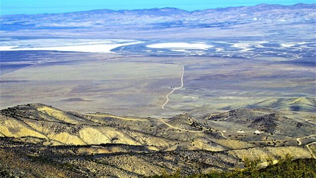 Four bright and shiny Western Bluebirds crossed our path and we were sure the Ravens were making fun of us. We thought we saw what looked like a fairly steep drop off towards the East so we figured we could go that far and check it out and maybe get a better view of these strange twisted geologically complex formations below. The air just wouldn’t quite cooperate, but what we could see was profound. It was like a crumpled piece of construction paper. The ridges and lines and dramatically sharp cuts, edges, ravines were awesome. Yet, in the middle of all this pressure, uplifting, clashing was a flat gentle runway like surface right in the middle. It was, including Death Valley, the trippiest natural formations I have seen. We must return for clearer skies and a far longer, intimate exploration.