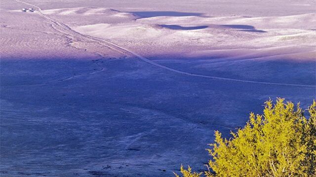 To our surprise, from up high came a light. Up and down, out of site and then within, the light became two and the orange trim lights of a vehicle became visible; a massive cloud of dust rising behind. Upon arriving at this location, I had just stopped the truck in the middle of this intersection and didn’t even think about other cars, but thank god, the roads didn’t intersect in right angles, but kinda merged in an equilateral triangle, and he came across the hypotenuse of the intersection, while we were stopped on one of the sides. Faster than his headlit approach, his tail lights disappeared almost instantly. Our frozen amazement turned to hysterical laughter. A shot of Bushmills was offered to the gods for preventing a collision of the only two vehicles in motion for 700 square miles, and the fandango blazed on.