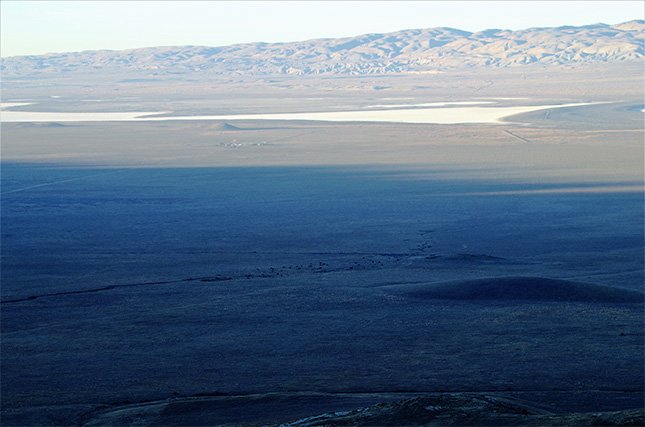 The Carrizo Plain National Monument is about fifty miles West of Bakersfield; about thirty-five miles West of Highway 99; and/or about ten miles West of Highway 33. It is approximately 250,000 acres in size— about 38 miles long—and 17 miles wide, running approximately NW to SE. The Monument is distinguished for its world-class fossils, paleontological resources, and as the location where several rock formations were first recognized and defined such as the Paso Robles, Caliente, and Morales formations. The geomorphic and geologic structures of the Monument are the product of millions of years of erosion, sediment deposition, faulting, volcanism, and uplift. Most of the sediments that consolidated to form the Caliente and Temblor Ranges that surround the Plain were deposited into marine and near-shore basins during the Miocene Epoch.
