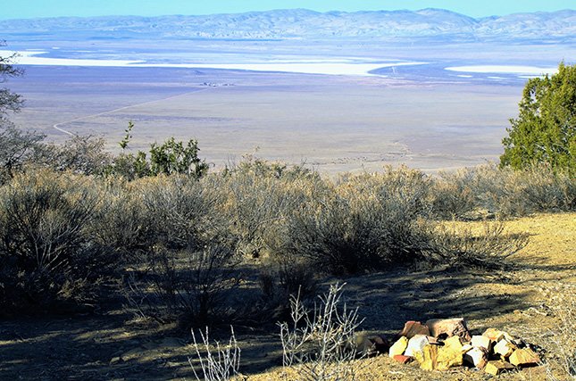 Our thirst momentarily quenched, we remounted the steed, climbing past a few more sharp curves to another wide spot and a fire ring. The BLM encourages dispersed campers to camp in existing/previously used sites. These sites are pretty obvious due to the lack of or semi-trampled vegetation, the rocks for a fire ring or perhaps blackened remains from campfires. Often flattened tent or sleeping sites have been cleared and/or scraped so it doesn’t take a paleontologist to see that other folks have camped in these spots. This spot did not have the totally unobscured 200 degree view of the prior spot, but it did have some large Junipers, Mahogany, and Scotch/Witches Broom along with plenty of smaller shrubs of sage and grasses. It was much greener and far more pleasant, comfortable, calming, and far less chance for dust and dirt. We were up the hill another 500 feet or so in elevation, so the views between the Junipers off the edge and out over the plain below and beyond were a bit more expansive than from the first site. It did not take more than another beverage or two before we decided this was it. We were here; six hours of driving, exploring, discovery already made it feel like we had been gone for days; we had already seen some great things, fantastic scenery, and knew we were in a real special place. We were off to a great start and were feelin’ real good about the next couple days.
