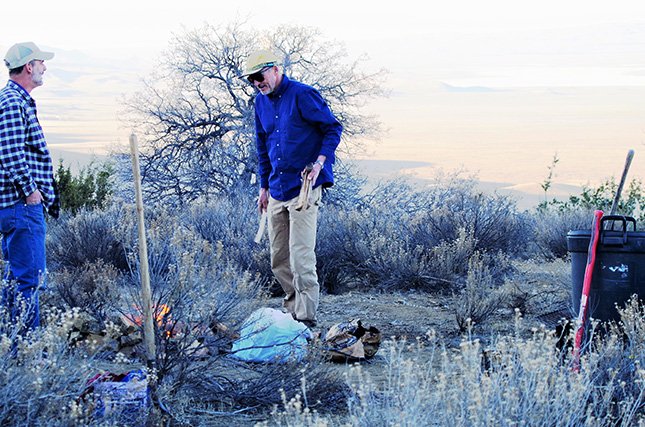 I know I have said this before, but the beauty of containerizing much of your gear is that is makes loading and unloading very quick and easy. We were done in a half hour or so; an excellent spot again a massive Juniper was selected for the kitchen, the views were outstanding; a little breeze was blowing, but not too much and it was almost nonexistent on the leeward side of the Junipers. Tables, chairs, stove, were out; some gear and tents set up; tunes, beverages, and snacks; fire.