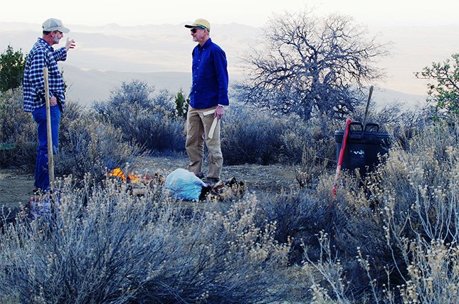Bob rearranged the few rocks left of the old fire ring; Steve scouted about for several more and soon the ring of many good things was ready. It does seem like on many a trip, the first thing we do after settling on a spot is to make sure the fire ring is in the right spot and it is sound, steady, and stable. Fire is good. I backed the truck up; turned on some mellow tunes and we began to unload. We each roamed about the site, back and forth, this side and that; looking for a flat, clear spot for a tent, with a minimum of the appropriate distance between and among us. Bob has a penchant for setting up farthest away from camp central and this again was the case. Steve was sharing memories of this old backpacking tent he bought in 1973 from the REI on Gilman Avenue in Berkeley. He was happy to have this old friend along.