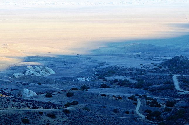 I was concerned about the status of the boys upon their awakening, but to my great surprise, nay astonishment, they both were quite spry and active. In fact they were both up before me again and thinking a sausage and egg breakfast was in order. I kept to my manly Neanderthal menu of yogurt, dry toast, banana, and hardboiled egg. Breakfast was consumed; coffee was re-engaging the mono nucleic acids and riboflavin’s and soon energy was being expended on packing up. Synapsis were again firing and cells recovered. The warm sun and fresh breeze, were cleansing. We took in the vast vistas and many distant horizons, thousands of ridges, ravines, washes, and alluvial fans carrying their detritus onto the valley floor as we neared the moment of departure to begin our Northward journey home.