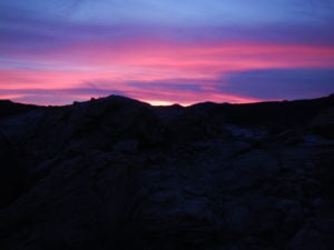It was time to return to camp and begin consuming mass quantities. I was ready. I do not like to cook or eat in the dark, but for winter camping, it is a necessity and a trivial thing really. The boys were in good spirits upon my return and dinner was almost ready. The lighting from sunset and the blues in the sky made me feel like I was at a planetarium to watch a laser show. It was so warm and calm and the desert smelled incredible – still moist from the prior rain. This was a fantastic time to be here.