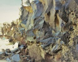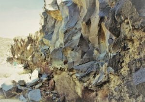 We each strolled about seeing what there was to see – mines, old trails, ravines, debris of one kind or another, a discussion on the origin of a very trippy rock formation and voids created all along its bottom – the inverse image of frozen water lobes along the bottom of a snow bank at the edge of a creek or pond. The eats were excellent, beverages outstanding. I needed a nap and could easily have fallen asleep in the back of the truck, probably falling prey to a young warrior looking for his first scalp.