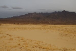 We traversed a massive flat open treeless valley – Fremont Valley named after John C and his exploits in these parts; crisscrossed with dirt tracks of all shapes and sizes. A very few houses, trailers, structures, or shacks dotted the expanse from time to time to break up the monotony and give us something to look at. Most structures had long been abandoned and many were partially or almost completely covered by the sand regularly being blown up against it. It was quite a sight to see entire houses and large buses and equipment all but submerged in sand.