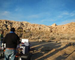 Bob and Steve had left early in the morning and headed down 395, a spectacular trip any time of year, especially if the weather cooperates. In the midst of the warming trend we are in, they didn’t have a cloud in the sky to worry about, let alone any weather, wind, or snow. They arrived at our agreed upon meeting place, Red Rock Canyon State Park, a few miles North of the town of Mojave, on Highway 14 on Thursday afternoon. They picked out an excellent campsite and set up shop.
