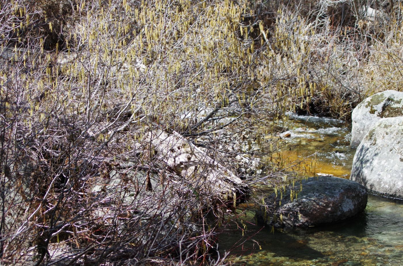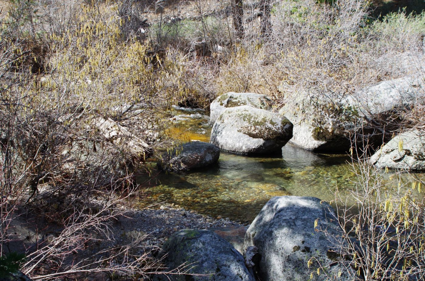 There was much talk of the creek and how cold it would be. This was, after all, still March. And even though we had 5% of our snow fall and that which did come down was very dry as compared to the water content of “normal” years, we were still at 5800’ and this water was still largely coming from snow melt. I believe Tom was the first in. Mike dipped a toe and ran off screaming into the woods. Ken, known for dunking no matter the conditions, took a quick sit and was out. Bob got in a little deeper, Mike reappeared far more determined. Ken re-entered.