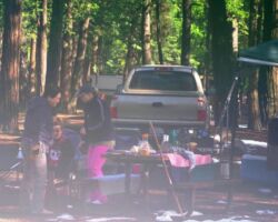 We planned on a simple weenies and corn-on-the-cobb faire, easy and quick at the end of a long day. It sprinkled the tiniest bit off and on and we would gather our chairs and odds and ends under the soccer tent we set up in between the table and the bear box. While this location did not keep the table dry, it did allow us to set the chairs in the middle of the tent or the opposite side of the direction the rain was falling to maximize the dry-keeping potential. However it did not allow us to stay close to the fire. Ain’t nothing perfect. The sprinkle was so mild, it really didn’t matter. In a few minutes, the precipitation had stopped and we were back at the fire ring turning our wieners.