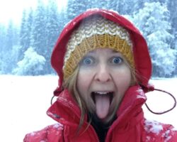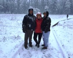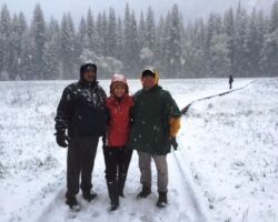 I went over to Haley’s tent and clawed on the tent as I do on her door at home in the mornings to wake her up. She made some kind of mumbling grumbling noise – the kind you make when you don’t want to be awake, so I asked louder if she had to pee. Of course she said yes, and when she got out of the tent and on stable ground and cleared her eyes, she too squealed at the sight. It was so cool to be up before dawn to have it snowing these massive flake, straight down, calm and peaceful as could be, gently floating to the valley floor. The only noise was the three of us; like dancing bears, prancing about, laughing and giggling and letting flakes settle onto our tongues and in our hands, trying to soak it all in.