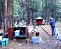 We got to our campground, endured the lecture from the host about bears, fires, generators, the weather, water, religion, taxes, etc., signed the papers and initialed others about having heard what they said and testifying to tell the others. We found our site much like we have the past 5 or 6 years now. Glacier Point was still high above; North Dome and Washington Column, and Half Dome were all still where they were supposed to be. It was reassuring. The weather cooperated while we unloaded and set up camp. We were done in no time; having selected sites for our tent and one we brought for Haley. It wasn’t long before we celebrated with a room temperature beverage and got a fire going.