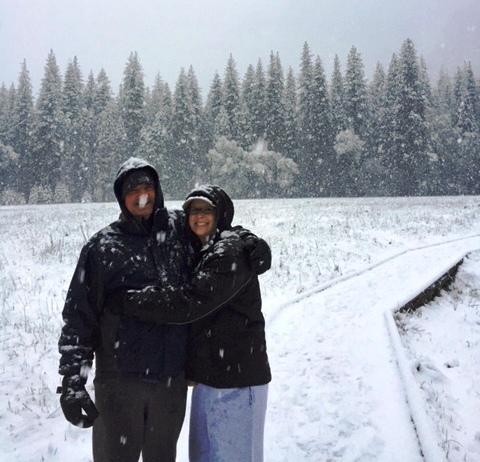We slept poorly as it rained pretty well on and off throughout the night. The morning was still gray and overcast, but no rain. I got a fire going and made coffee. Kristen put the bagels on the grill along with the slices of ham. Once they were warmed and browned to perfection, we slathered cream cheese on them and had a great little breakfast morsel. We headed to Curry to check emails and phone calls and such from Mike and Haley. We responded to both of them and were happy to know that they both were on their way and would arrive that afternoon. Kristen got a great hot chocolate from the bartender who told us about the Warriors games we had missed. I picked up some literature on the Stoneman Cabins at Curry and then we headed to the Ahwahnee. It was a pleasant walk, over the elevated wooden path across the meadow, past Lower Pines campground, along the Merced, up and over the bridge, through the woods, past the horses and corral, and finally picked up the site of the hotel. This all felt strangely familiar, somehow not ideal, and just a little different. It was decided that we had followed the same very indirect route on our bikes one or more times in the past.