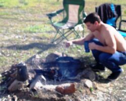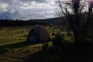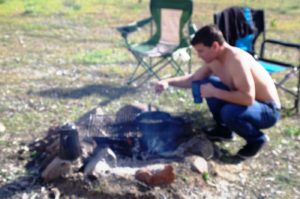 By now it was about 8:00 and Jordan and the other guy were back at camp. We cooked and ate dinner together. They didn’t each much but they very much appreciated the effort. The other guy now realized he had lost his wallet and he was a bit fidgety, so they borrowed our lantern and flashlight and headed back to the Dodge to hunt for the lost wallet. These guys were something else. After a bit they returned, and we discussed options. I offered to take them back to Dakota’s house in Clear Lake right then, although I wasn’t excited about it. For his part, he expressed concern about me driving back alone on these desolate roads. We figured we could take him back in the morning, unless by some miracle someone else came to the rescue at this time of night.