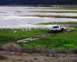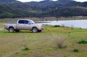 He asked us rather politely if we would help by driving around to come down to the water level and help pull them out. We said we would and turned around to look for the road or a track down to the lake. Not seeing anything but motorcycle tracks, we went all the way out to Bartlett Springs Road, turned left and headed towards one of the old boat ramps. We poked around and found a track that headed in the right direction.