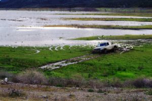 As we returned to the bank overlooking the reservoir and the Dodge, I could tell this was going to be a long term investment. I was torn between helping these guys, even though they were total dumbasses to drive out into the mud and get stuck, something they had done numerous times in the past according to their stories, and despite their determination not to do anything stupid this time, this time they really did themselves good. Yet, I was here to spend time with my son, to do some bonding and have a good father son experience, not have the rest of our trip consumed by helping these numb nuts.