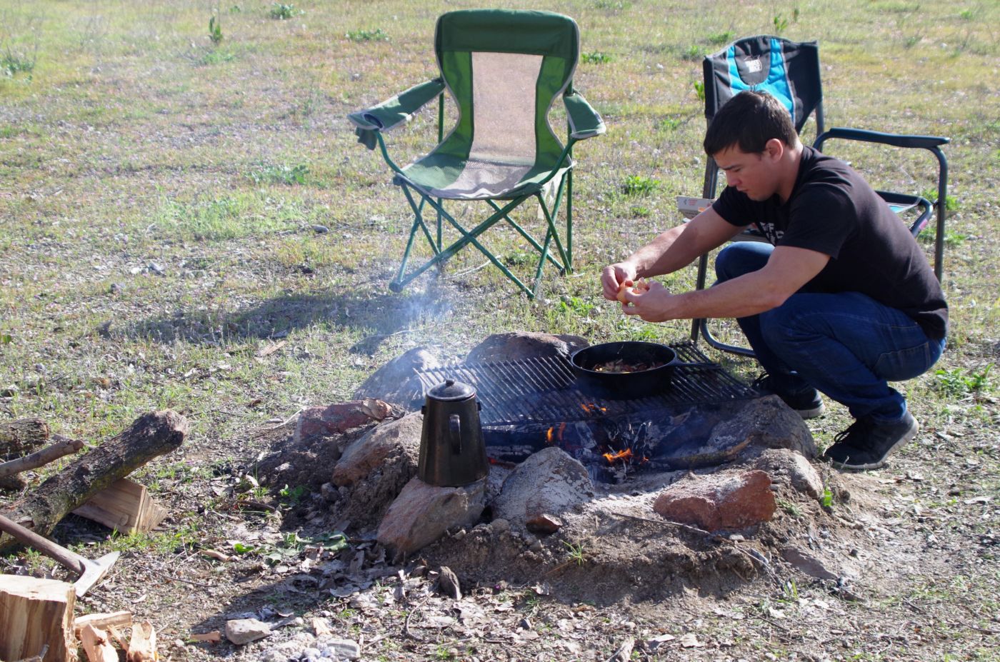 By now it was about 8:00 and Jordan and the other guy were back at camp. We cooked and ate dinner together. They didn’t each much but they very much appreciated the effort. The other guy now realized he had lost his wallet and he was a bit fidgety, so they borrowed our lantern and flashlight and headed back to the Dodge to hunt for the lost wallet. These guys were something else. After a bit they returned, and we discussed options. I offered to take them back to Dakota’s house in Clear Lake right then, although I wasn’t excited about it. For his part, he expressed concern about me driving back alone on these desolate roads. We figured we could take him back in the morning, unless by some miracle someone else came to the rescue at this time of night.