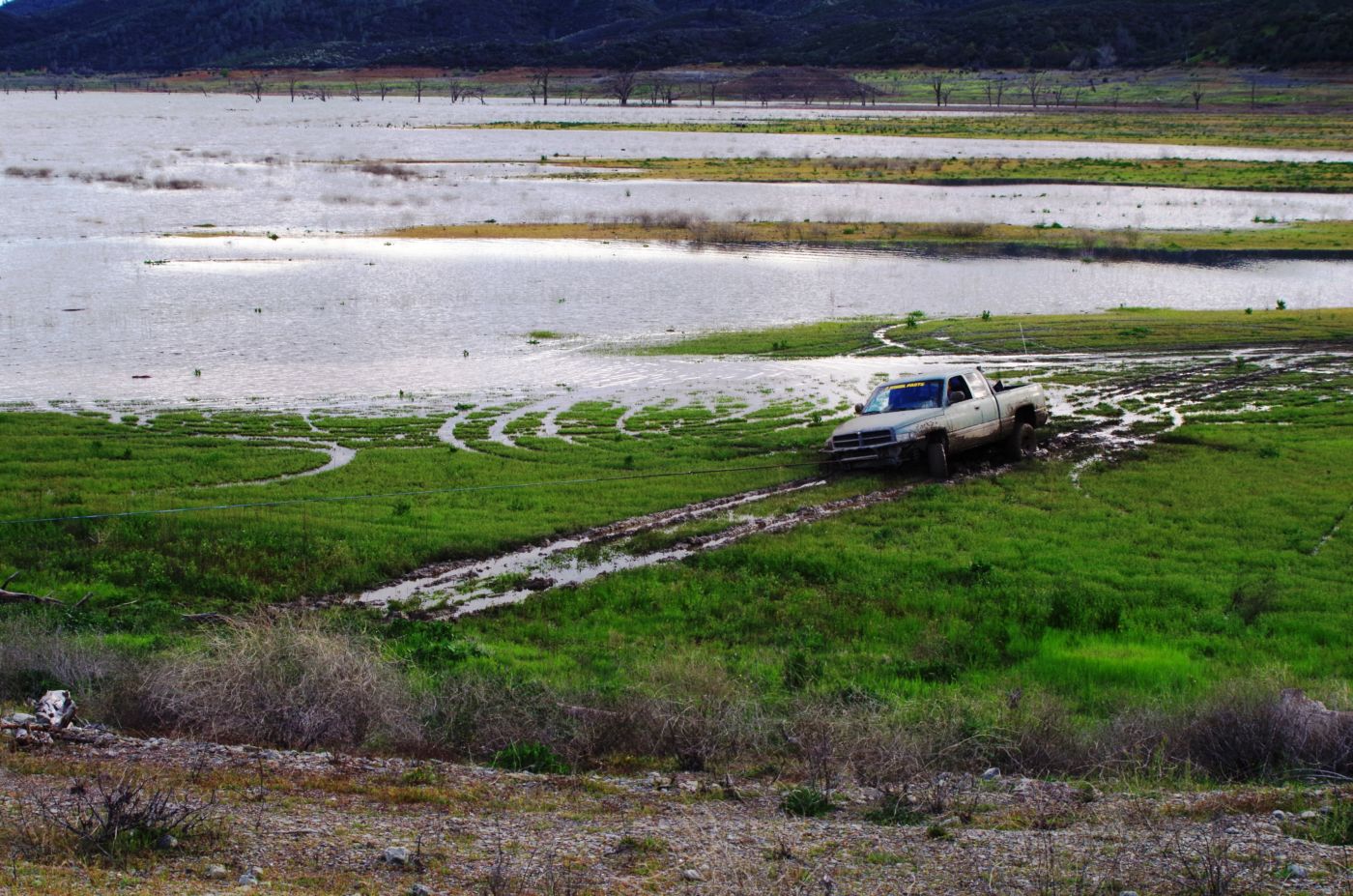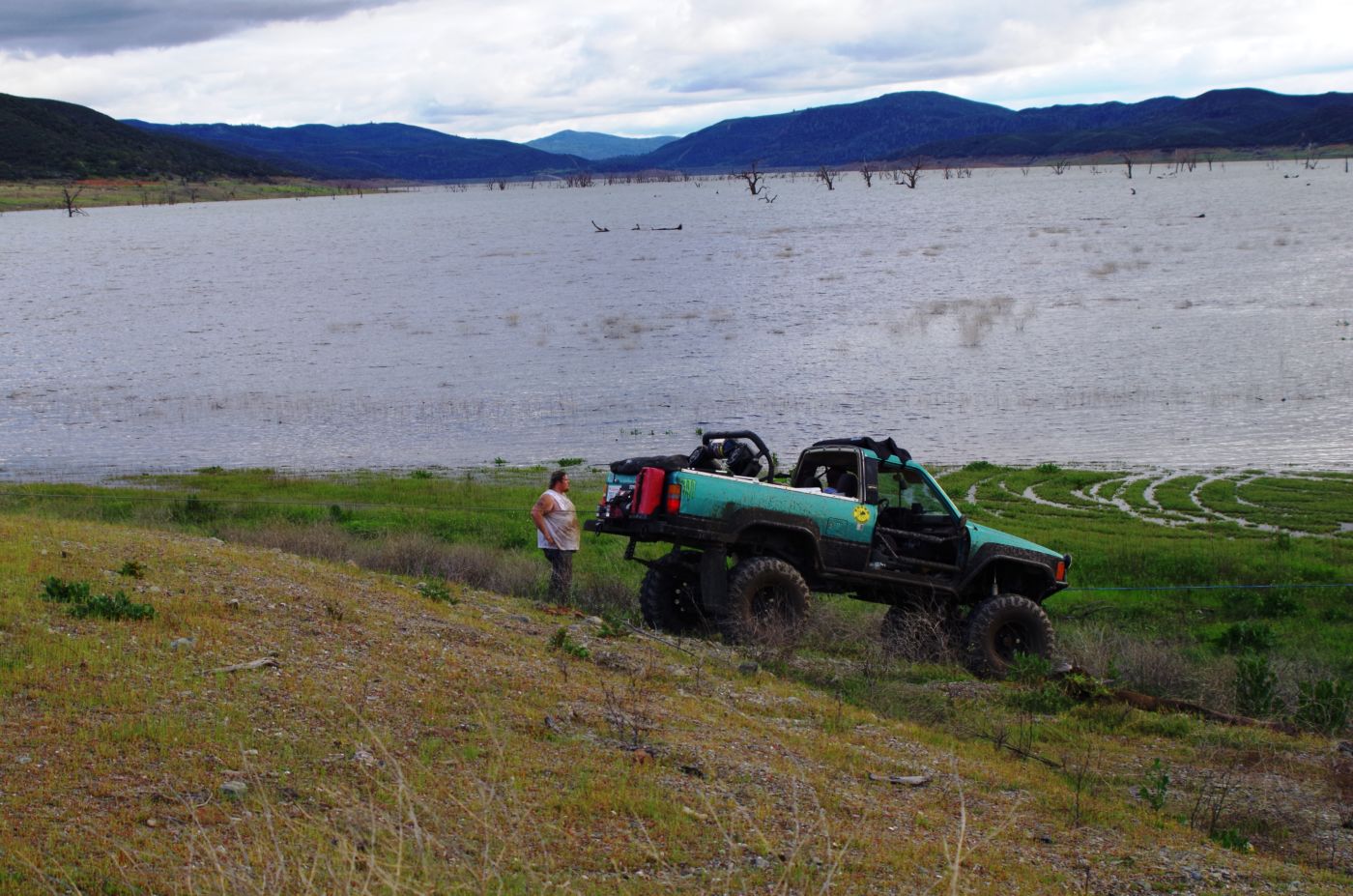 He asked us rather politely if we would help by driving around to come down to the water level and help pull them out. We said we would and turned around to look for the road or a track down to the lake. Not seeing anything but motorcycle tracks, we went all the way out to Bartlett Springs Road, turned left and headed towards one of the old boat ramps. We poked around and found a track that headed in the right direction.