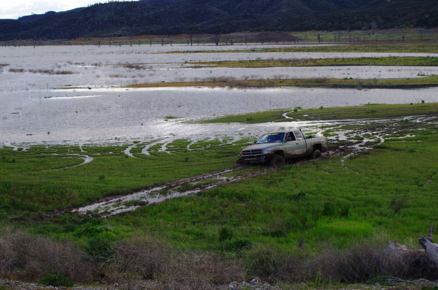 As we returned to the bank overlooking the reservoir and the Dodge, I could tell this was going to be a long term investment. I was torn between helping these guys, even though they were total dumbasses to drive out into the mud and get stuck, something they had done numerous times in the past according to their stories, and despite their determination not to do anything stupid this time, this time they really did themselves good. Yet, I was here to spend time with my son, to do some bonding and have a good father son experience, not have the rest of our trip consumed by helping these numb nuts.