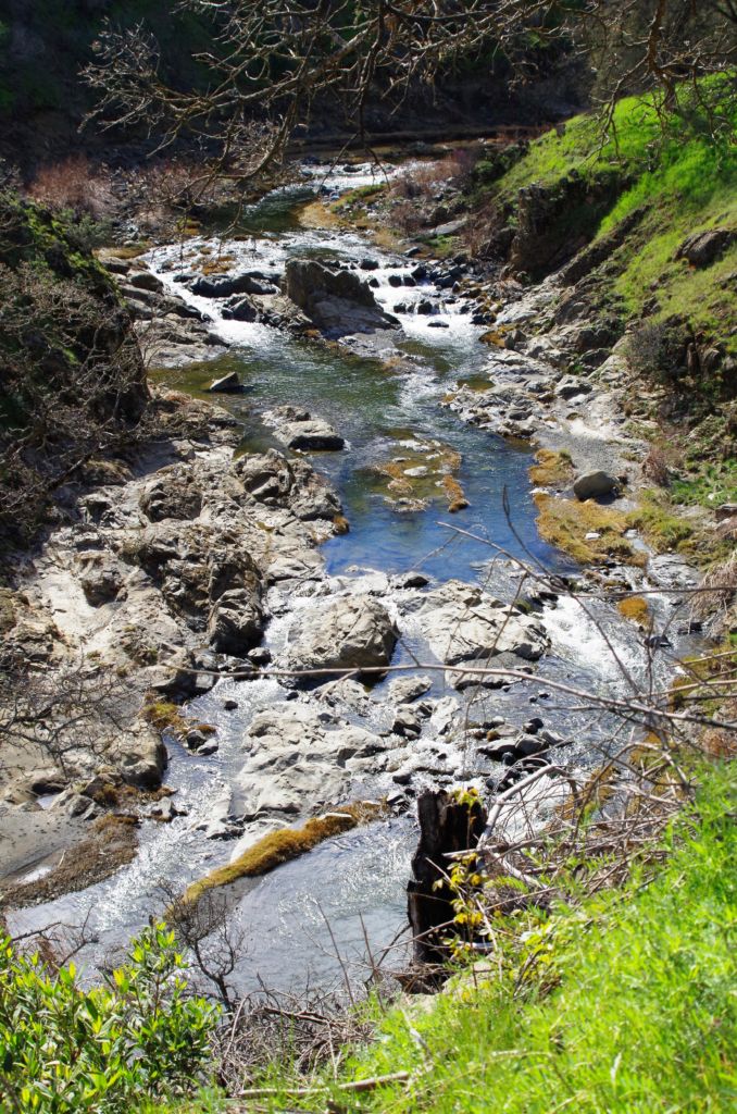 Brim Road leads West across the valley, then becomes a series of sharp, steep switchbacks up the hillside until it intersects Walker Ridge Road on the top. At this point, the road becomes Bartlett Springs Road and drops down to the North end of the reservoir. I assume at some decade, maybe 1984, there was water near the dam and the road that crosses it. Now, the water is a far-away shimmer, although this time it was a bit closer than last January.