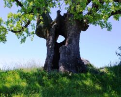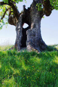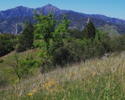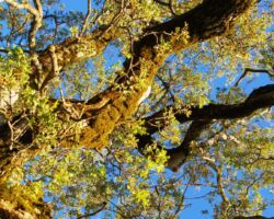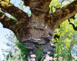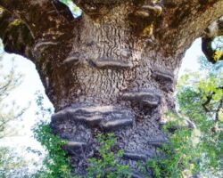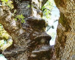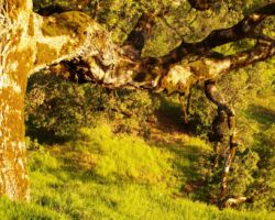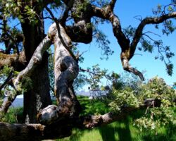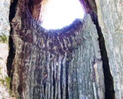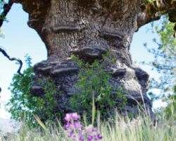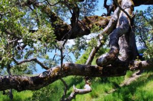 As I got out of the rig and approached them around the base of the tree, I said that I thought I had seen a bunch of monkeys in the tree and I thought I had slipped a few continents. I got a laugh out of them as they headed back to the camp spot and left me alone with the tree. I knew instantly I wouldn’t be able to take any good pictures of it, even with the lupine flowering at its base. If any of this area had any spiritual value at all, this tree was the lightning rod, absorbing equal parts Pacific Ocean, fresh salt air from around the world, clear, clean sunshine, and all the power of the grasses and wildflowers and the canyon and ridgetop forests. This thing was something else.
