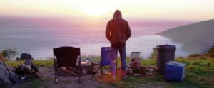 In from the East, at about 20 miles an hour shot two cars up into our clearing and right to the edge of the hill. One car parked 4 feet from the neighbors rig, and the van parked four feet from it leaving maybe 8 feet to the truck. Out squealed 6 or 8 young college type girls and 2 nerdy dudes. They jumped around and hugged each other and kept on squealing. It was one of the rudest, most oblivious, insensitive, uncaring, self-indulgent, myopic actions I have ever witnessed in my life, and certainly in my camping/outdoors life. We were incredulous. We just stared at these kids for a while watching them flit about, get stuff out of the car, gaze out at the ocean and generally begin to make themselves at home. Steve and I were getting fairly worked up but I wanted to stay calm and see what they had in mind. They couldn’t possibly be thinking about staying here, even though they were loitering 3 feet from Steve’s tent. They must be here to watch the sunset, wait for friends, or just to take a break. To rip up into someone’s, nay two people’s camp sites was incredibly rude enough; to think about staying here was beyond consideration.