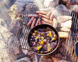 Many of the fellas left after 2 nights, some after 1, but we stayed for a third and Terry and Tom cooked up the best food I had ever eaten on a camping trip –steaks, seafood, giant brown mushrooms, fancy vegetables, everything marinated or sautéed in delicious sauces. It was awesome. Steve and I had done a wonderful in-ground cast iron meal the night before, and we may have had some special cocktails as well. It was just a magical trip.