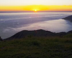 As we rounded the bend and craned our necks to get the first glimpse of our spot, we were crushed to see a tent and two chairs perched on the edge, overlooking our spectacular view and the site of so much fun on the prior trip. There were 6 or more of us on that trip, the first and only on or near the Coast. It was incredibly beautiful, as the Big Sur coast is apt to be. We had the most incredible storm hit us; we watched the thing come in from the Pacific and just smash into us – a big dark mass that didn’t seem to be too much higher than we were at 3,000 above the surf.
