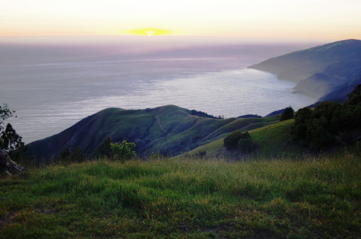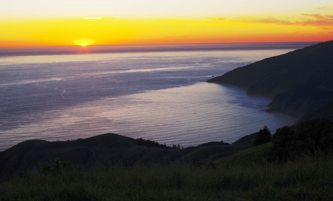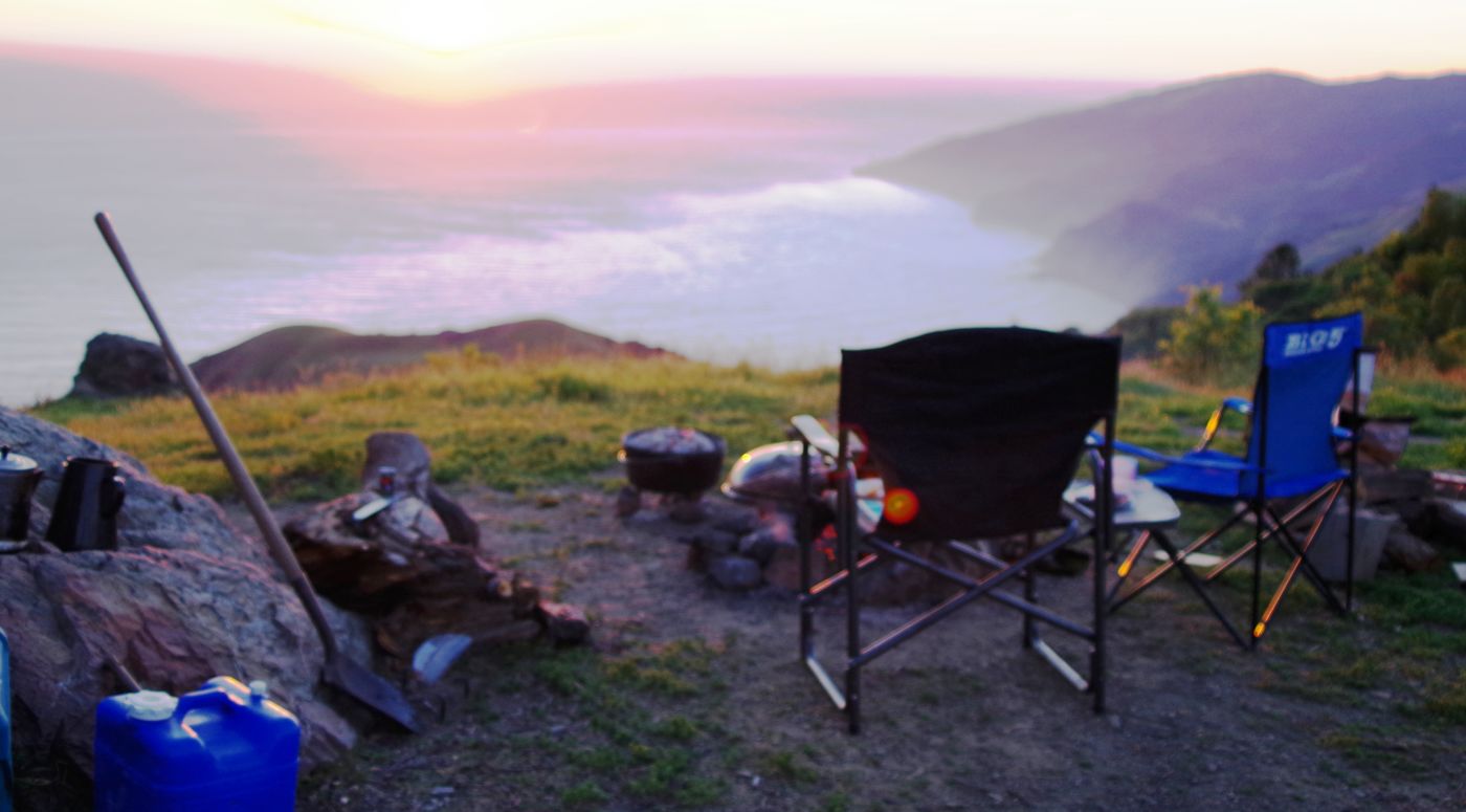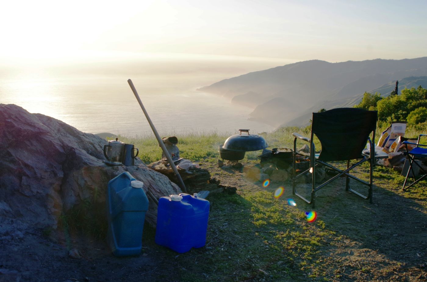 As we rounded the bend and craned our necks to get the first glimpse of our spot, we were crushed to see a tent and two chairs perched on the edge, overlooking our spectacular view and the site of so much fun on the prior trip. There were 6 or more of us on that trip, the first and only on or near the Coast. It was incredibly beautiful, as the Big Sur coast is apt to be. We had the most incredible storm hit us; we watched the thing come in from the Pacific and just smash into us – a big dark mass that didn’t seem to be too much higher than we were at 3,000 above the surf.