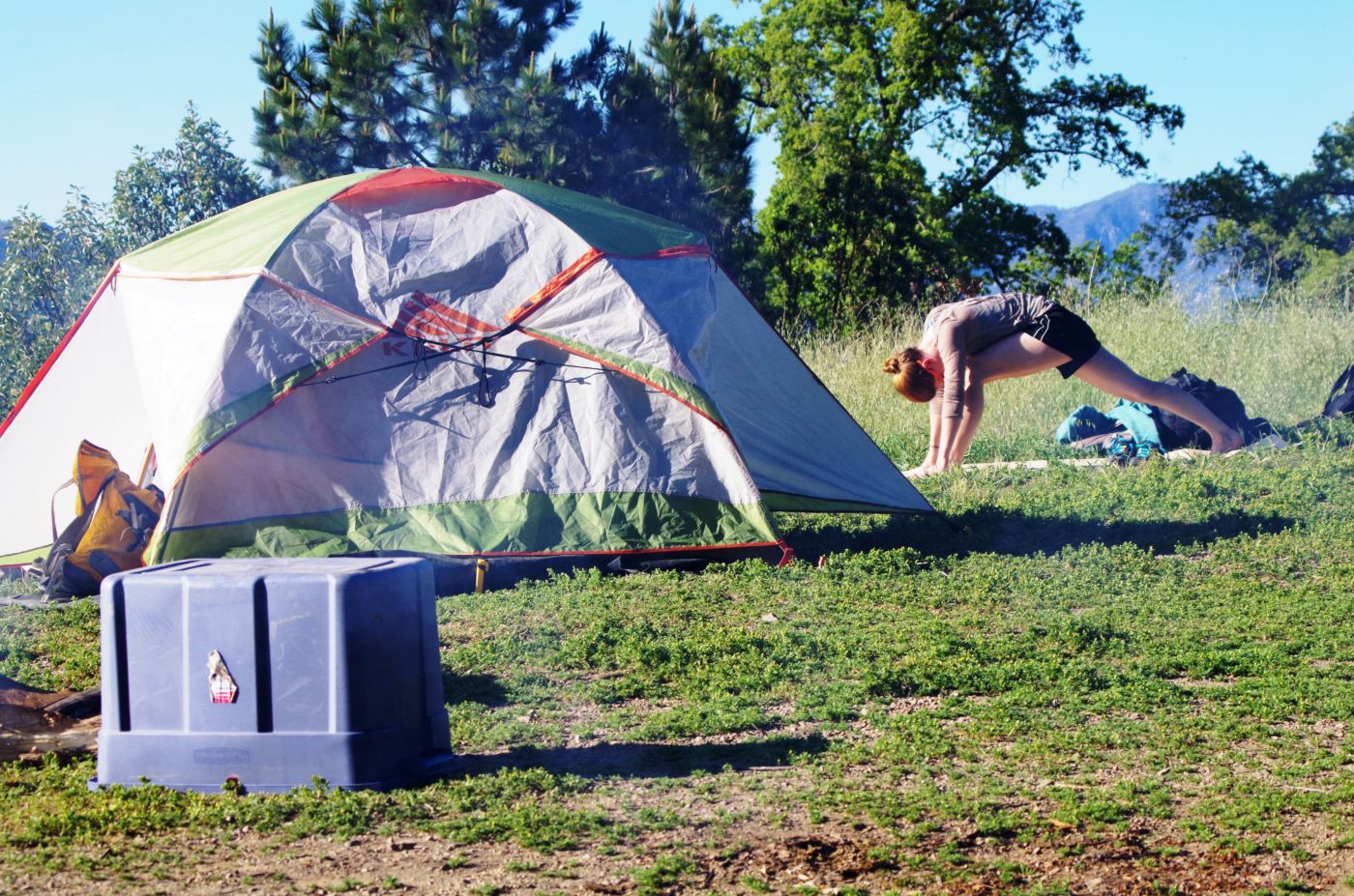 Unfortunately, all signs seemed to be indicating a longer stay rather than a briefer one. One of the girls got out her yoga mat and began an extensive session not 4 feet from Steve’s tent. The other girl pitched herself over the edge of the hill and sprawled out in the sun amidst the lupine, poppies, buttercup, milkweed, and poison oak. One of the guys was gathering sticks. While, as a middle aged American male, I had fantasized about a group of sorority girls joining us on a camp trip, somehow this particular reality was too much for me to bear.