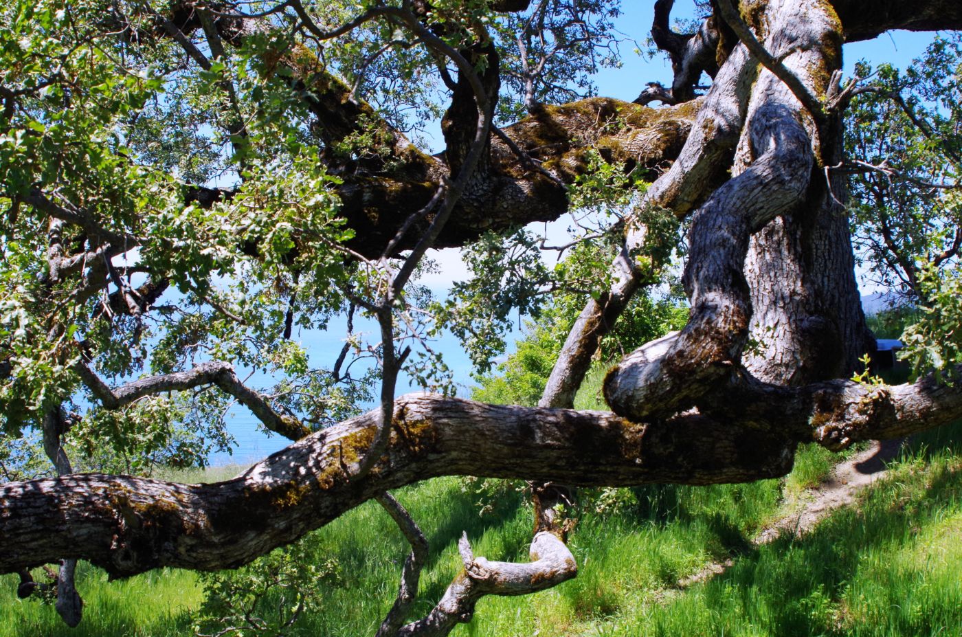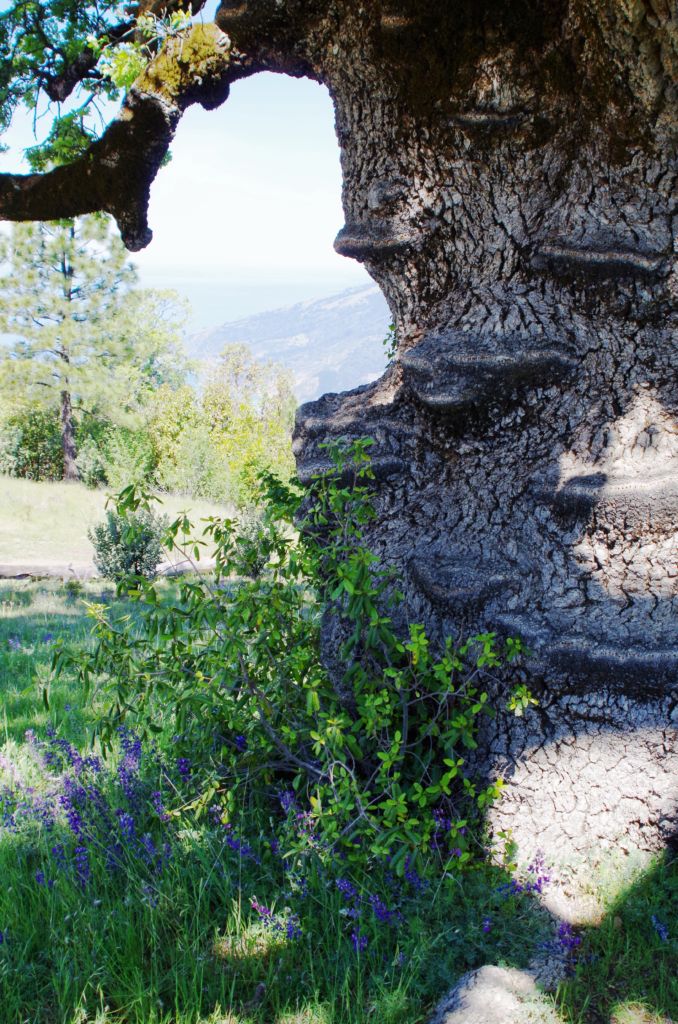 As I got out of the rig and approached them around the base of the tree, I said that I thought I had seen a bunch of monkeys in the tree and I thought I had slipped a few continents. I got a laugh out of them as they headed back to the camp spot and left me alone with the tree. I knew instantly I wouldn’t be able to take any good pictures of it, even with the lupine flowering at its base. If any of this area had any spiritual value at all, this tree was the lightning rod, absorbing equal parts Pacific Ocean, fresh salt air from around the world, clear, clean sunshine, and all the power of the grasses and wildflowers and the canyon and ridgetop forests. This thing was something else.