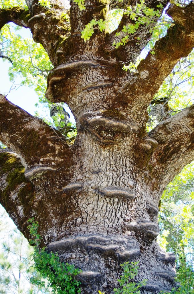 There was a very cool oak tree up top with only half of its trunk, and that was only a couple inches thick; the entire middle was gone. On top of that, the one third of the circumference that remained, had a 1 foot diameter hole in it, but the thing still had a pretty healthy, large, somewhat balanced crown. It was a super trippy tree. But the one I really wanted to photograph, I almost missed again. I remembered it from our last trip – it was like a cartoon or a magic garden type of tree. Not only was it massive, but it had all of these weird and mysterious growths – very strange shapes, textures, and lumps, even for an ancient White Oak on an exposed ridge, 3,000 directly above the Pacific.