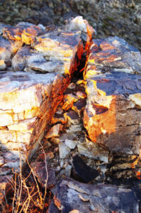 I scrambled up the end of the rocks that formed the ridge at the back of our camp, separating us from the valley behind us.  With each little rise, I seemed to rise hundreds of feet above the valley floor as its apron of desert sand and pebbles fell away to the South and East.  In the pre-sunrise orange glow, I felt everything; insignificant and a conqueror, meaningless and important, alone and connected to everything, empty and full, melancholy and joyous.  I wanted to take a picture of every pebble, every plant, and every relief in every direction.