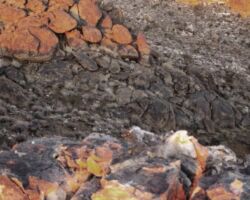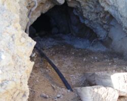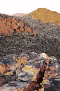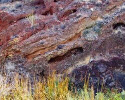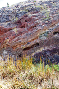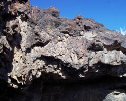Turning up Aiken Mine Road, we started hunting red rock.  I wanted to show Bill the Lava Tube and perhaps head all the way into Aiken Mine, which I think was a place I took Gabe, Ingrid, and the kids to when we stayed at Afton Canyon some 20 years ago.  There were only 4 people at the Lava Tube and 2 were leaving as we walked in.  We didn’t bring headlamps or flashlights for some reason.  I don’t recall having them with Bob, but perhaps we did.  It was too dark to go into the main chamber without lights and Bill, being so tall, would have had to really struggle, so we just hung in the caved-in portion at the bottom of the ladder for a bit.