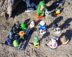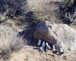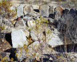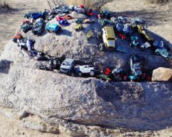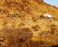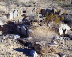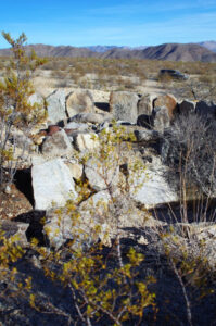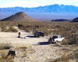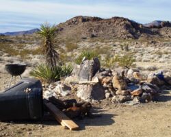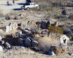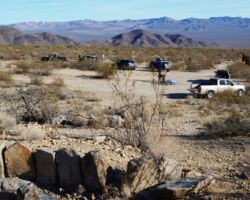 We found the old site of the spring, we saw some standing water and the coral, we found an old arrastre used to crush ore (not that we knew it at the time).  After some exploring we got the fire going and a beverage was had, just as another group of 6 or so rigs descended on us like a crappy scene from Las Vegas NCIS or some shit like that.  As fast as they drove in, they stopped a respectable distance away and didn’t spray us with dust or rock.  In fact they seemed just like us, just a couple decades younger.  They burst from their rigs, laughing and calling out to each other, heading to a nearby bush to pee, and just about as abruptly, started to pile back into their rigs.