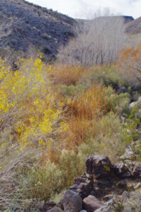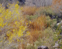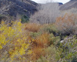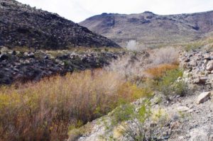 A little over a mile from the rig, we saw the remains of the Fort.  It was very cool. There was obviously another spring, and this one much more significant than any of the others, other than the stretch of the Mojave River through Afton Canyon.  There were many Cottonwoods and Willows, huge patches of reeds, and grasses in a large swath heading up into the higher reaches of the canyon.