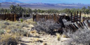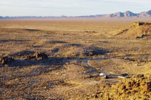 We celebrated our discovery with a snack and beverage and then navigator Bill again charted our course to head SW across open desert to intersect Lanfair Road.  This was going to be a highlight for me because I spent an inordinate amount of time on googly earth looking for potential camp sites in Lanfair Valley.  We skipped one option but found a better one and intersected Lanfair at the desired location.  There were scattered homes and buildings along Lanfair Road, but the town/site of Lanfair itself was nothing but a weird compound of strangeness.  We continued on another mile or so to find the Mojave Road coming in from the East, then returned to the East side of Cedar Canyon Road.